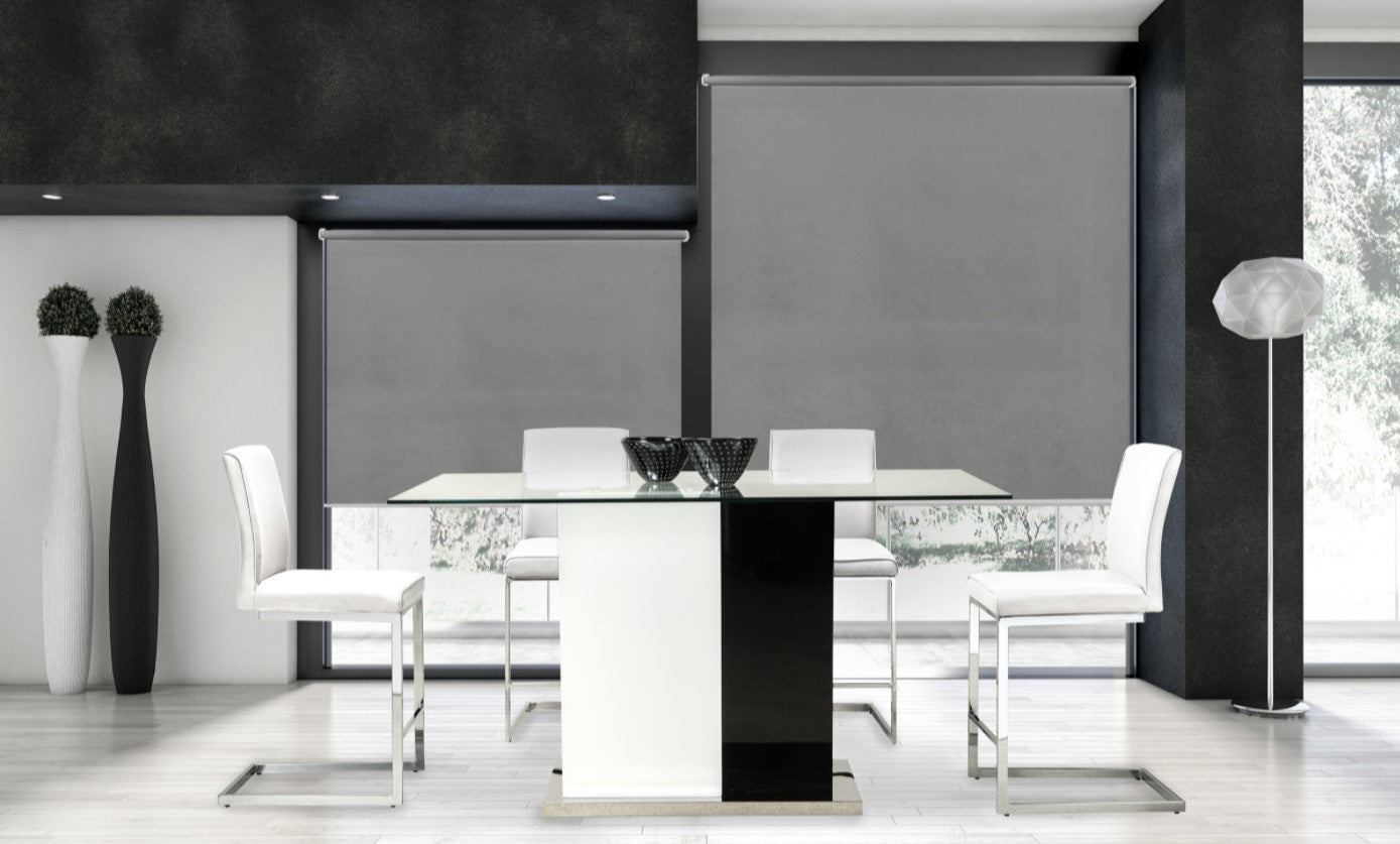 - Contemporary bright glass and glossy finishes creates a bright and open dining area