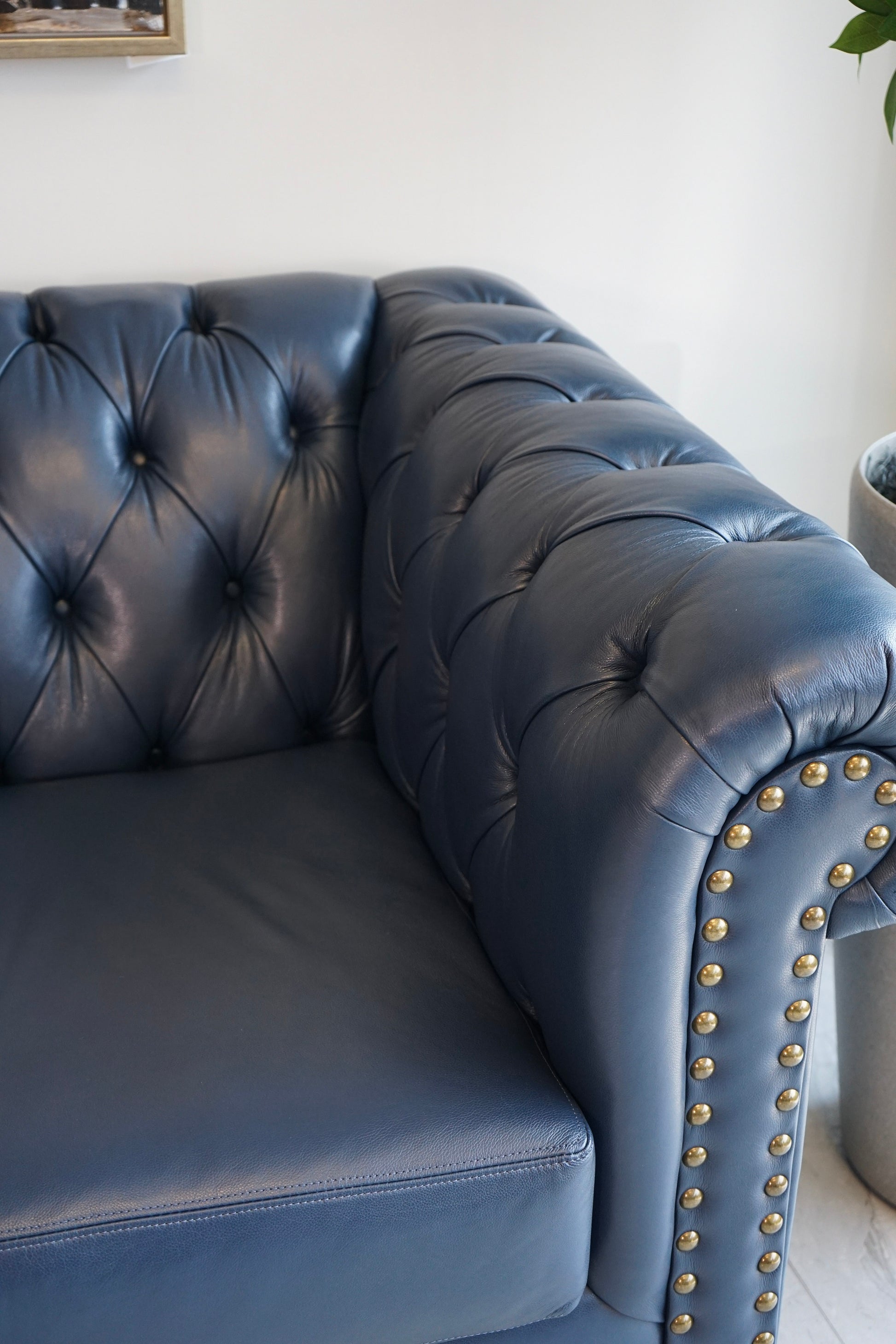 The Amalfi Leather Tufted Sofa: Canadian-made and carefully crafted with top grain leather for superior comfort. Choose from a rainbow of custom colors, and luxuriate in its solid wood frame for years to come. Get ready to relax in style! #relaxin'instyle