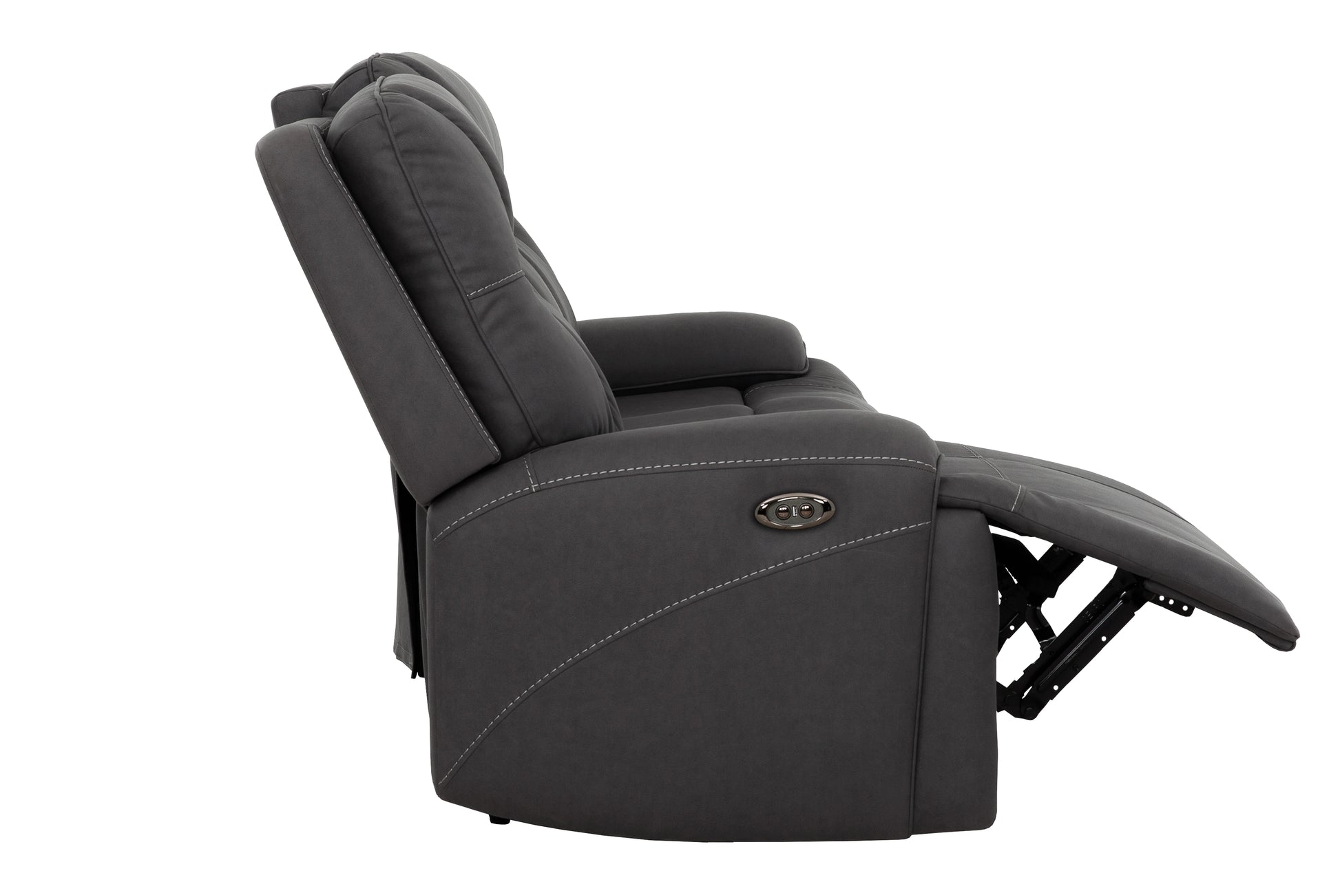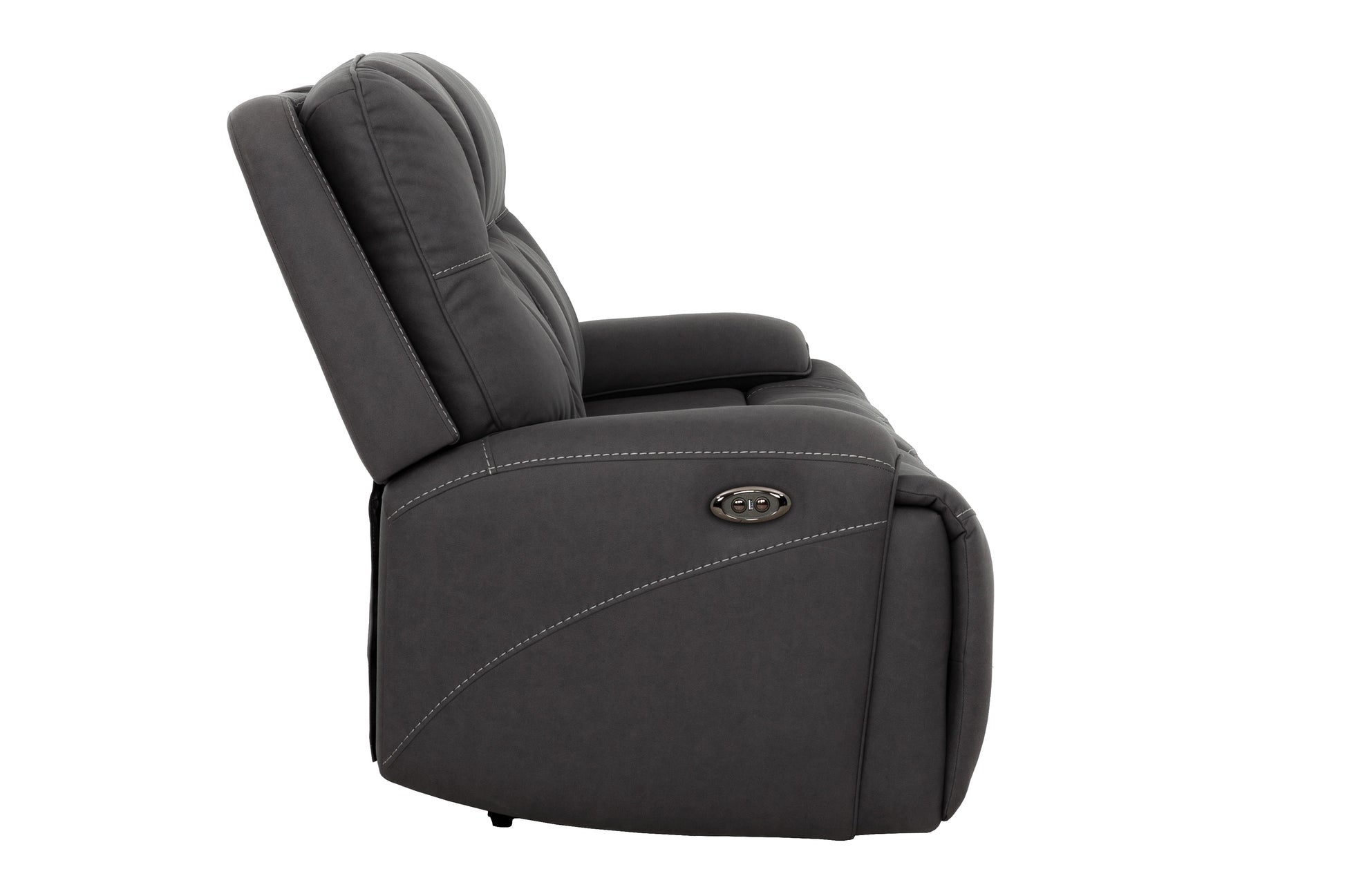 Transform your living room into a cozy oasis with our Kirke Fabric Power Reclining Sofa. Sink into the soft touch of our Grey Fabric and kick back in comfort with the Power Recliner. With its unique curved arms, the Kirke adds a touch of elegance to any space. (Sofa puns not included.)
