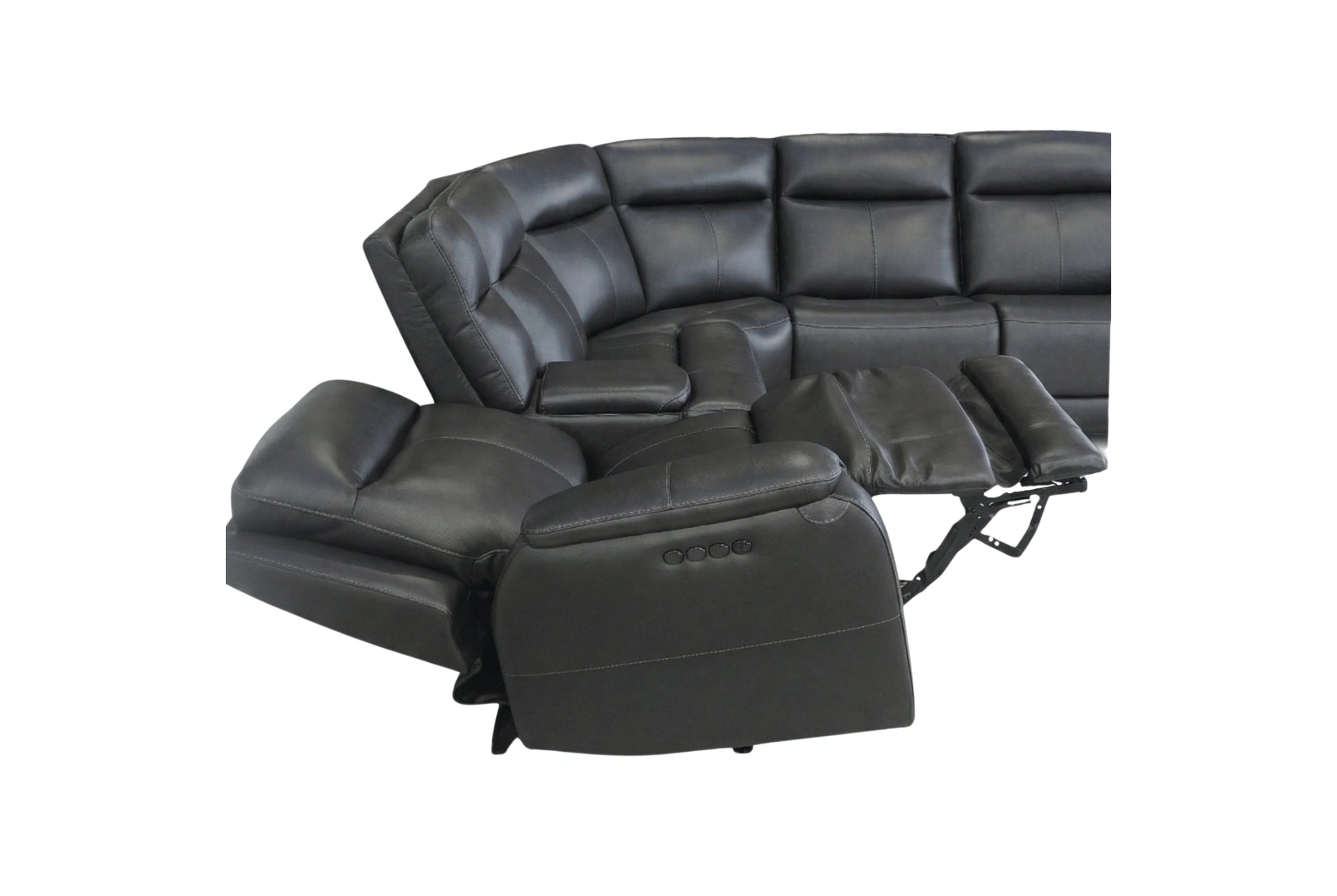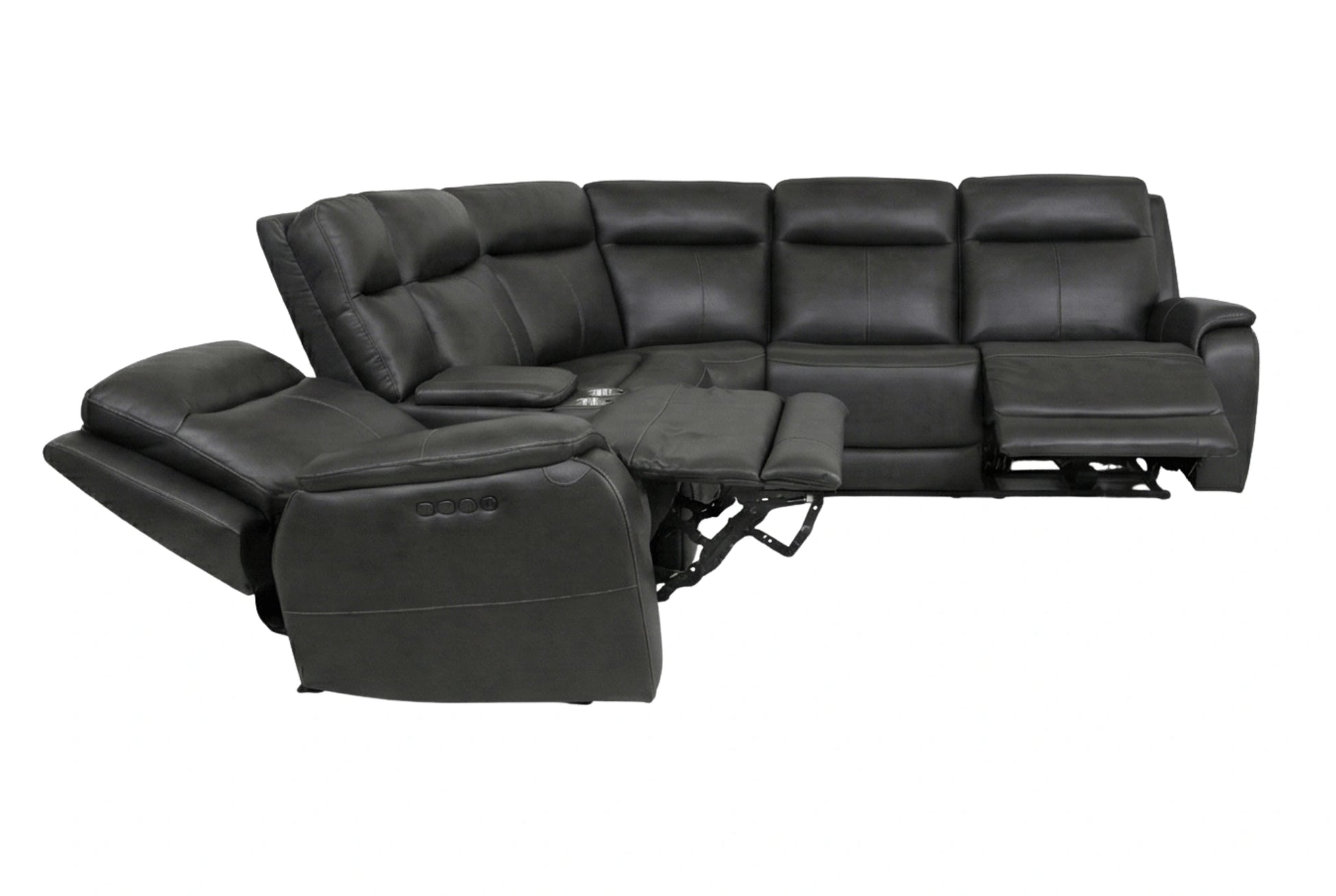 Experience next-level comfort with the Kona Sectional, designed for those who want luxury, technology, and relaxation all in one. Upholstered in smooth, durable leather, this sectional features advanced triple-power reclining that lets you customize your comfort from head to toe. With multiple recliners and a built-in console, the Kona is perfect for movie nights, entertaining, or everyday lounging.