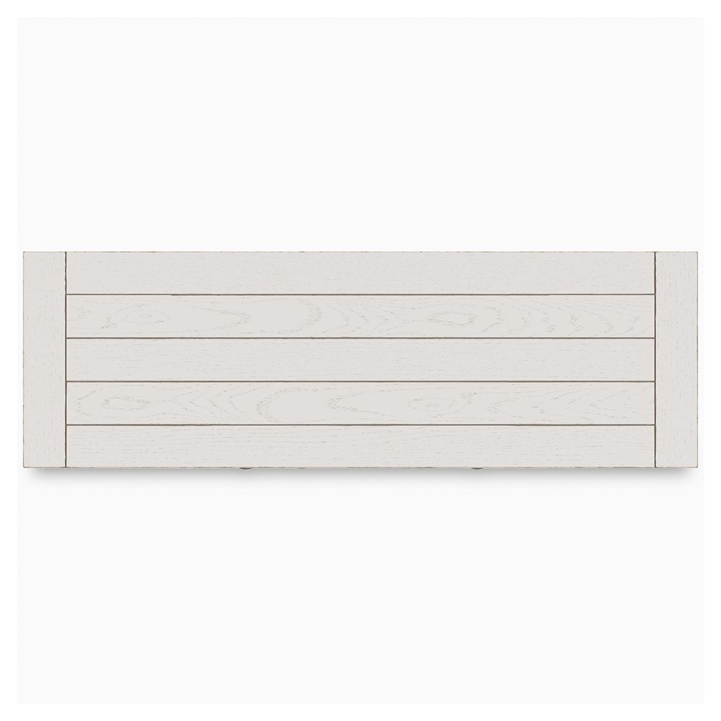 - Antiqued white finish with wood grain texture
