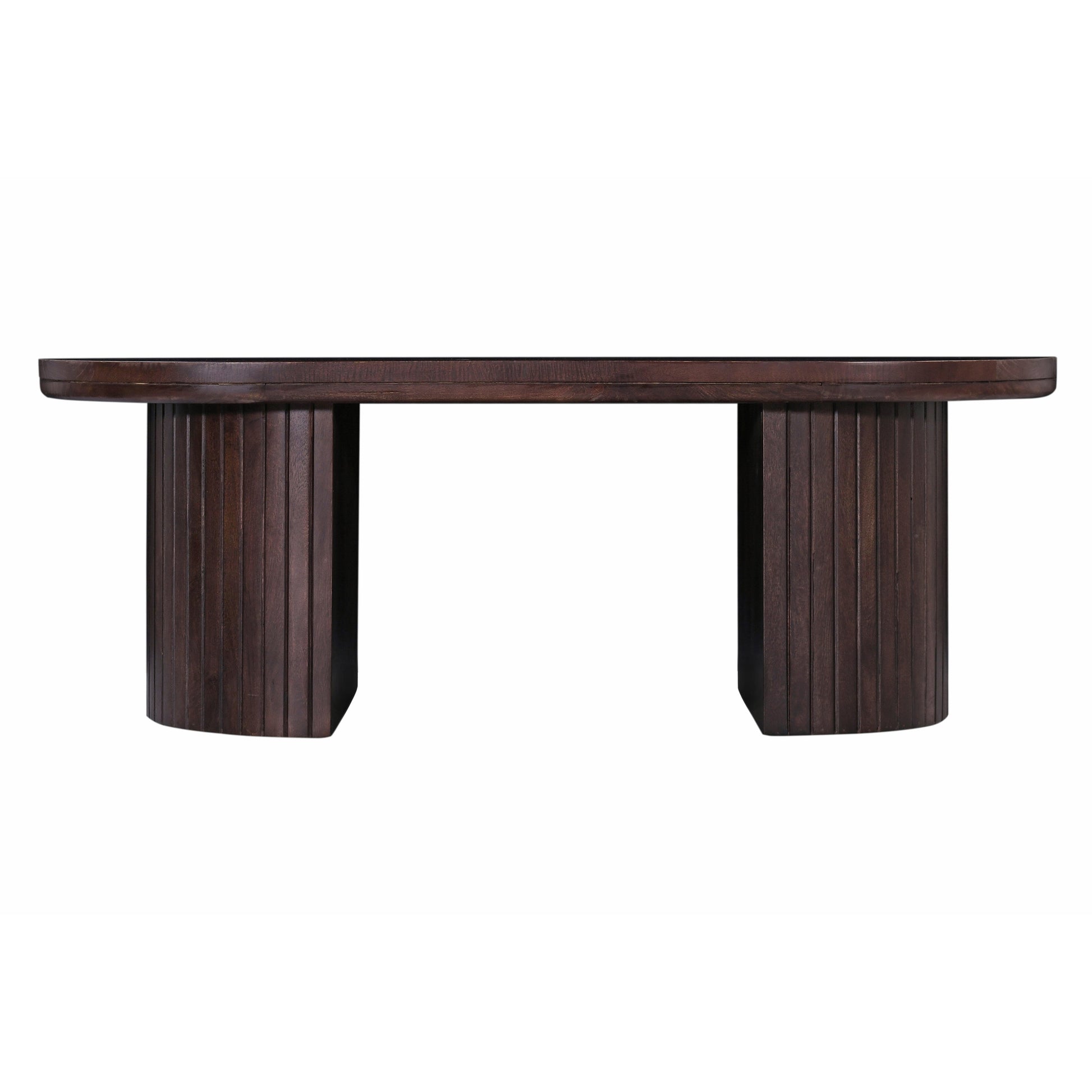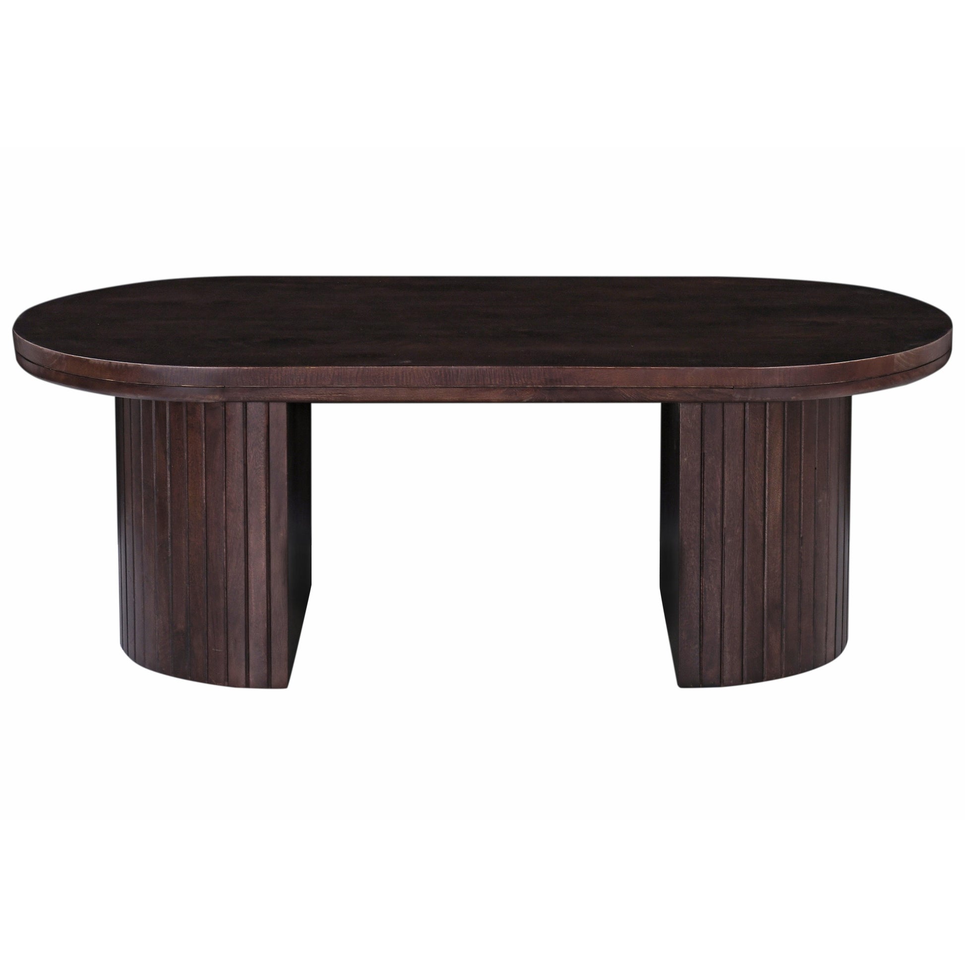 Start your mornings right with the 8783 Coffee Table. Its smooth, rounded edges and fluted base design add an artistic touch to your space. Crafted from rich mango wood with a dark finish that highlights the natural grain, this sturdy table promises durability and style. Perfect for your morning coffee, a stack of your favorite books, or even a delicious brunch spread. Take your time and enjoy every moment—this table is made for it.