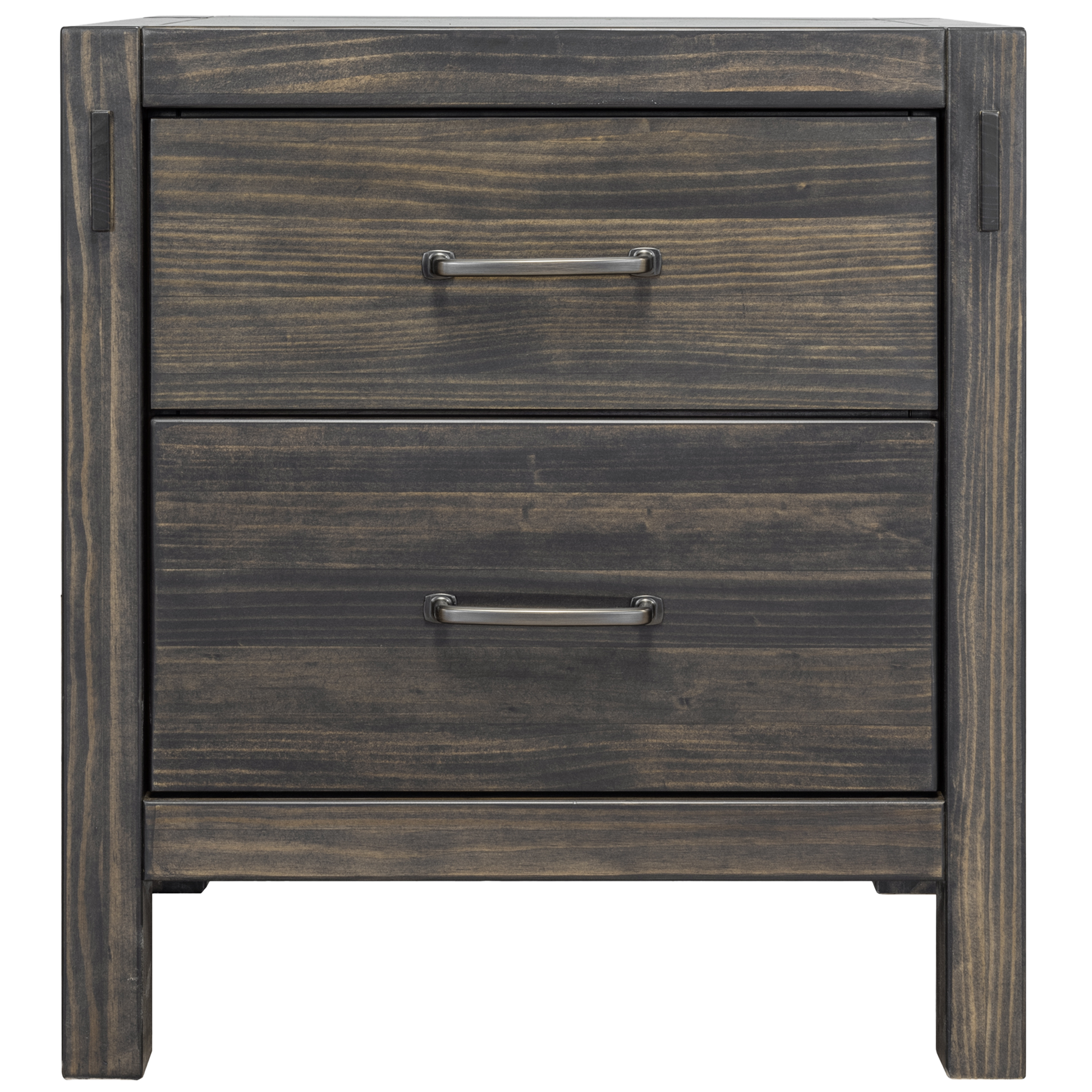 The Stella Night Stand features two drawers with 1 deep drawer in a charcoal finish.
